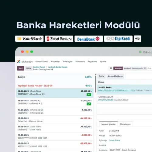 Odoo Banka Modülümüz ile Hesap Hareketlerinizi Zahmetsizce Yönetin